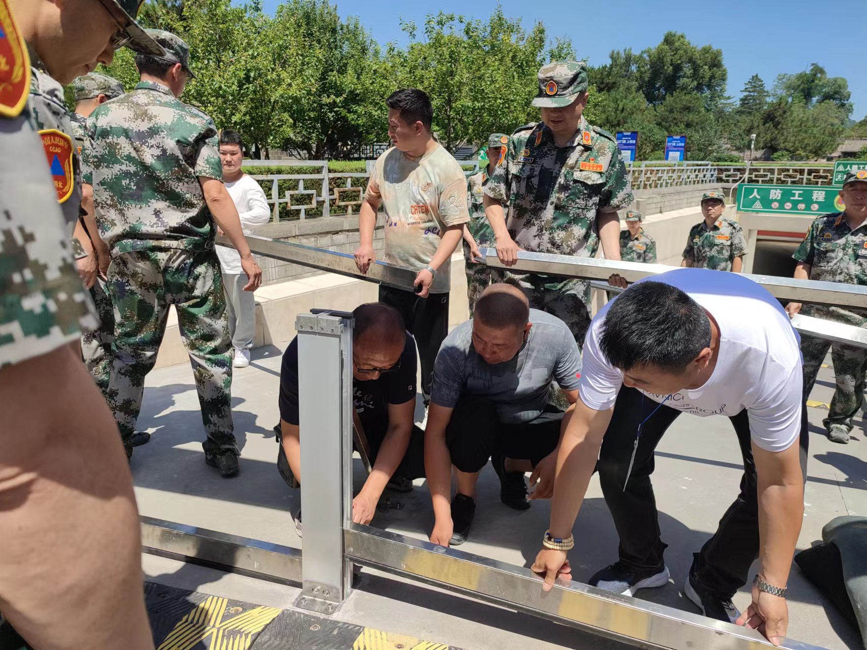 兩宮門地下停車場因地勢較低汛期的最大隱患就是雨水倒灌,這次防汛演練是一次實(shí)戰(zhàn)演練,用時5分鐘就完成了一處停車場入口的演練內(nèi)容,做到擋板安裝完畢兩端螺銷固定不松動,擋板中部鋼結(jié)構(gòu)支護(hù)不滑動,防汛沙袋堆堵密實(shí)。