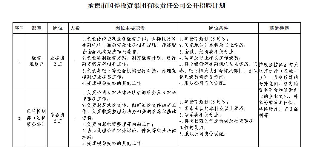 具體應(yīng)聘條件見(jiàn)《承德市國(guó)控投資集團(tuán)有限責(zé)任公司公開(kāi)招聘計(jì)劃》。